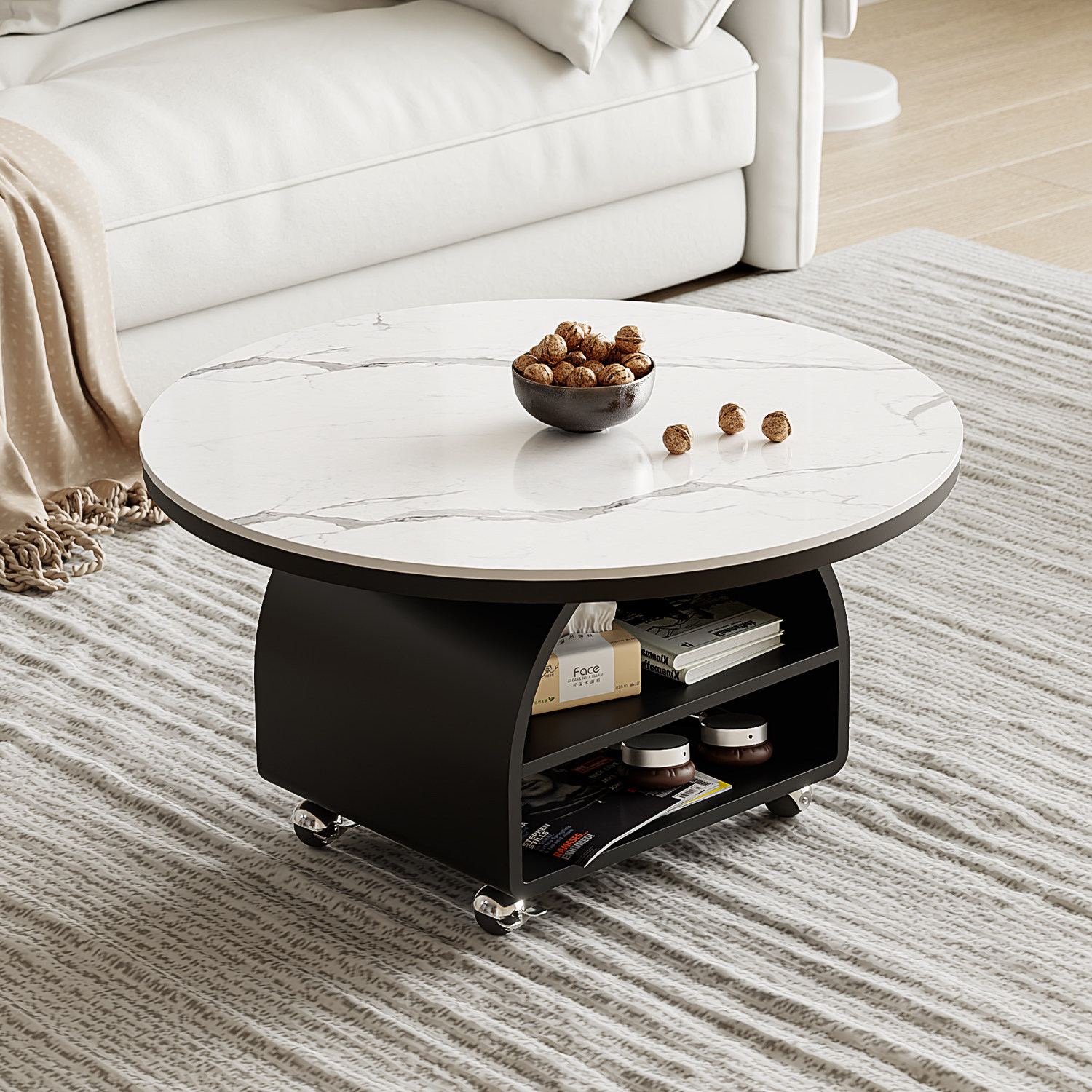 茶几客厅家用2026新款轻奢高级感小户型可移动阳台圆形岩板小茶桌