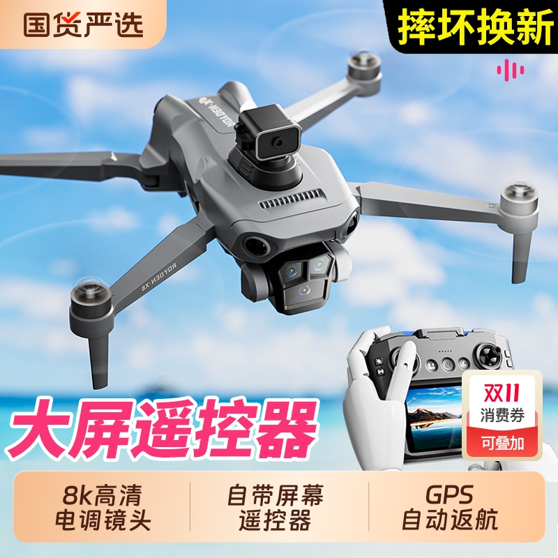 大屏遥控避障8K无人机航拍高清专业20000米超长续航GPS智能返航遥控飞机学生防抖无刷儿童夜视带屏