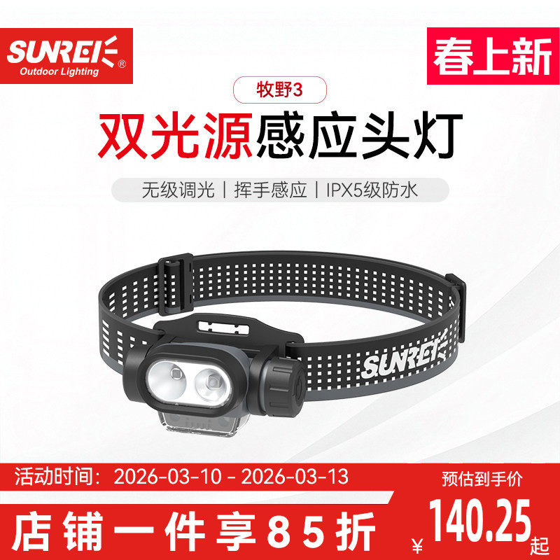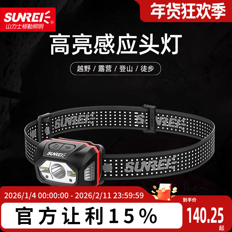 山力士强光感应头灯超亮越野露营徒步登山充电头戴式户外头灯防水