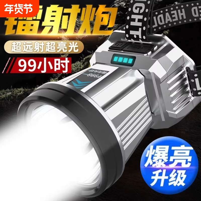 头戴式强光头灯手电筒超亮远射LED可充电防水矿灯超长续航钓鱼灯