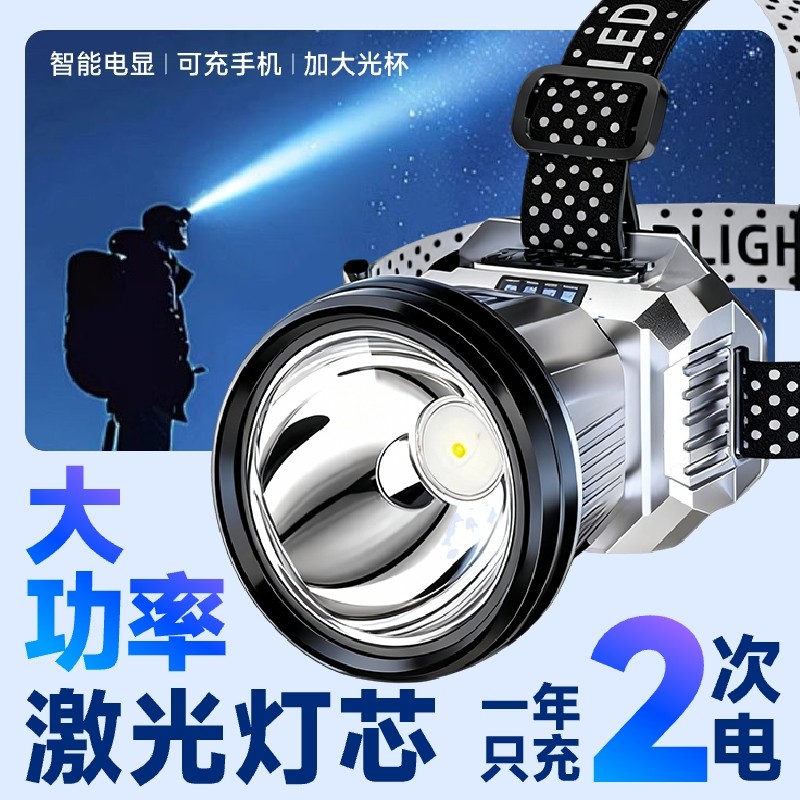 头灯2025新款强光超亮充电头戴式照明灯户外矿灯感应工地专用防水