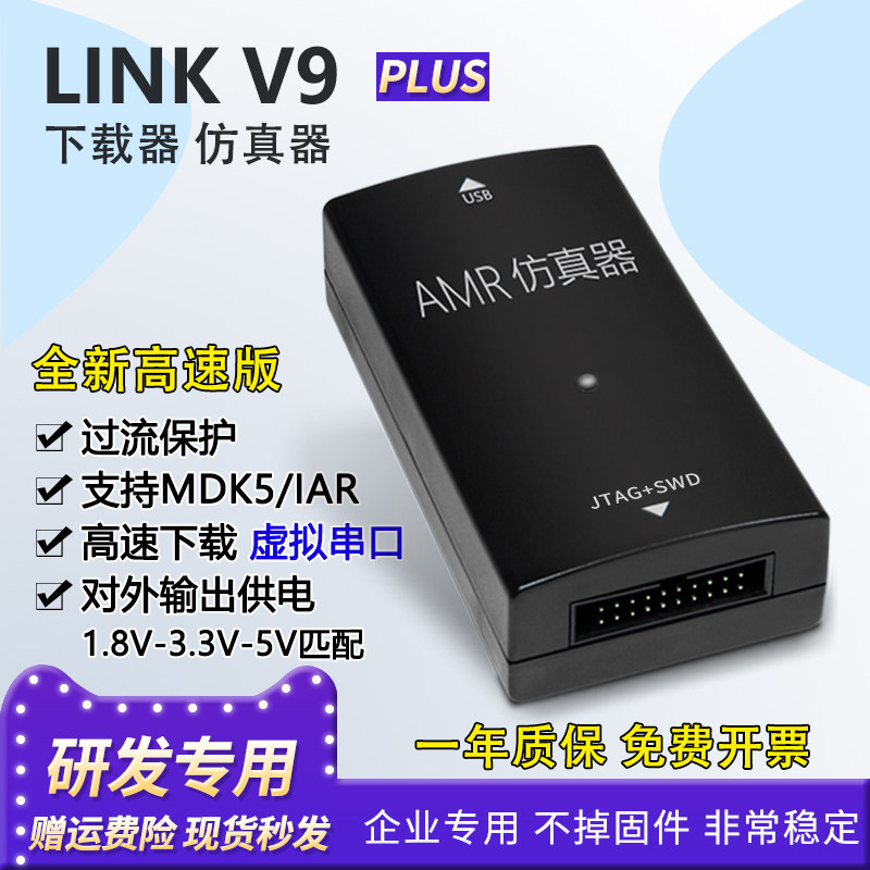 JLINK V9 仿真下载器兼容STM32 AMR开发V8 V9烧录编程器黑金隔离