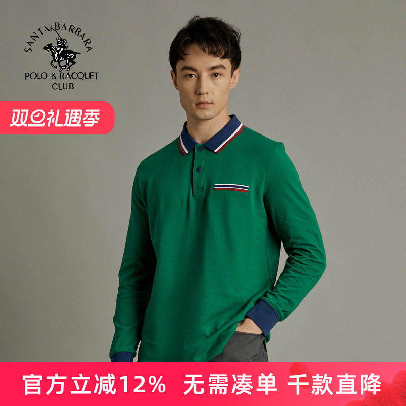 圣大保罗父亲男装秋季款POLO衫全棉翻领商务休闲长袖T恤PS18KT101