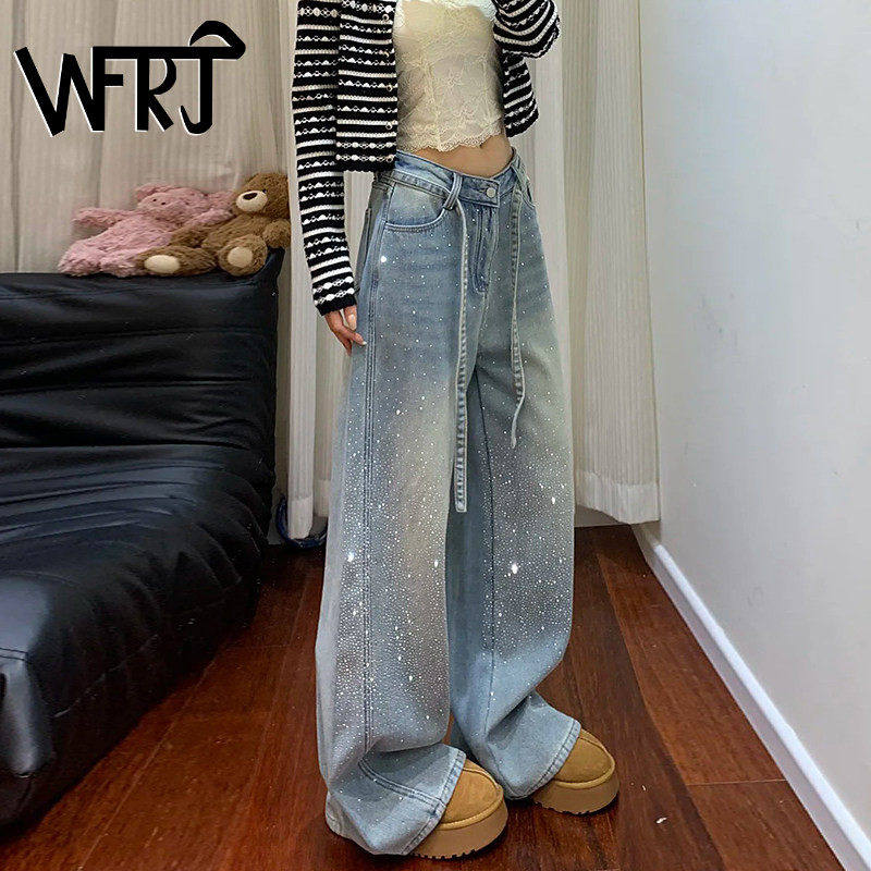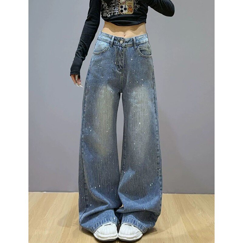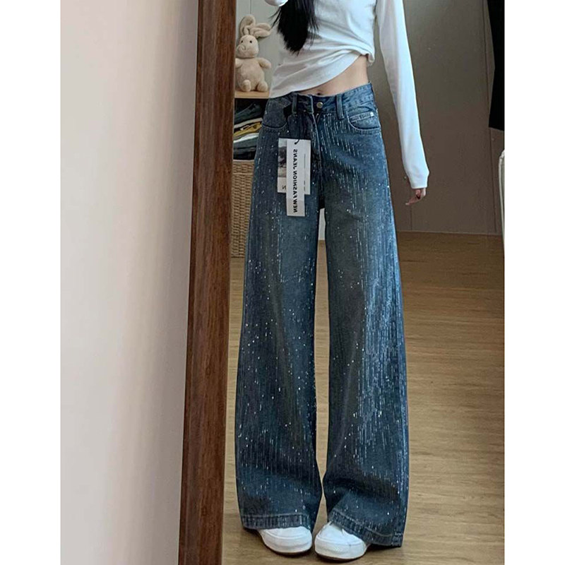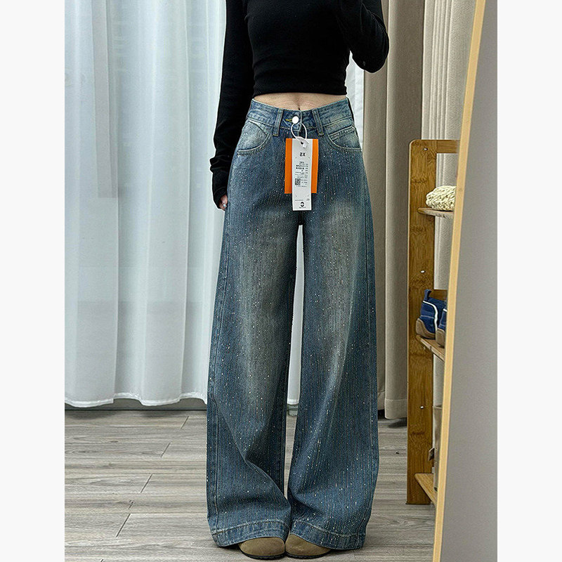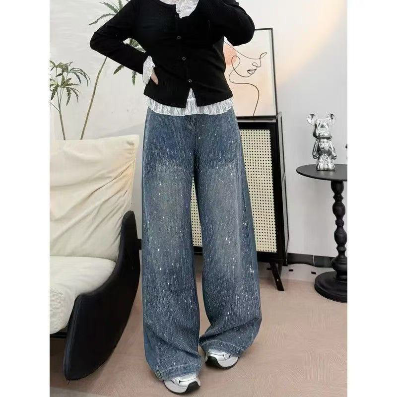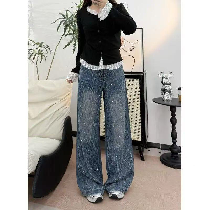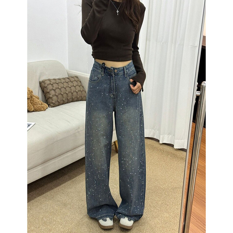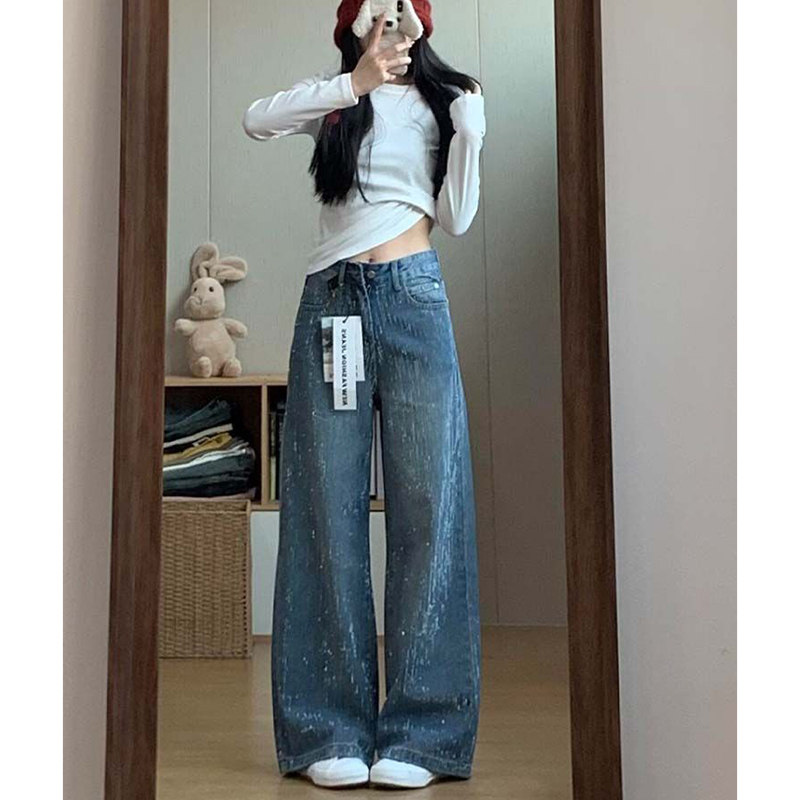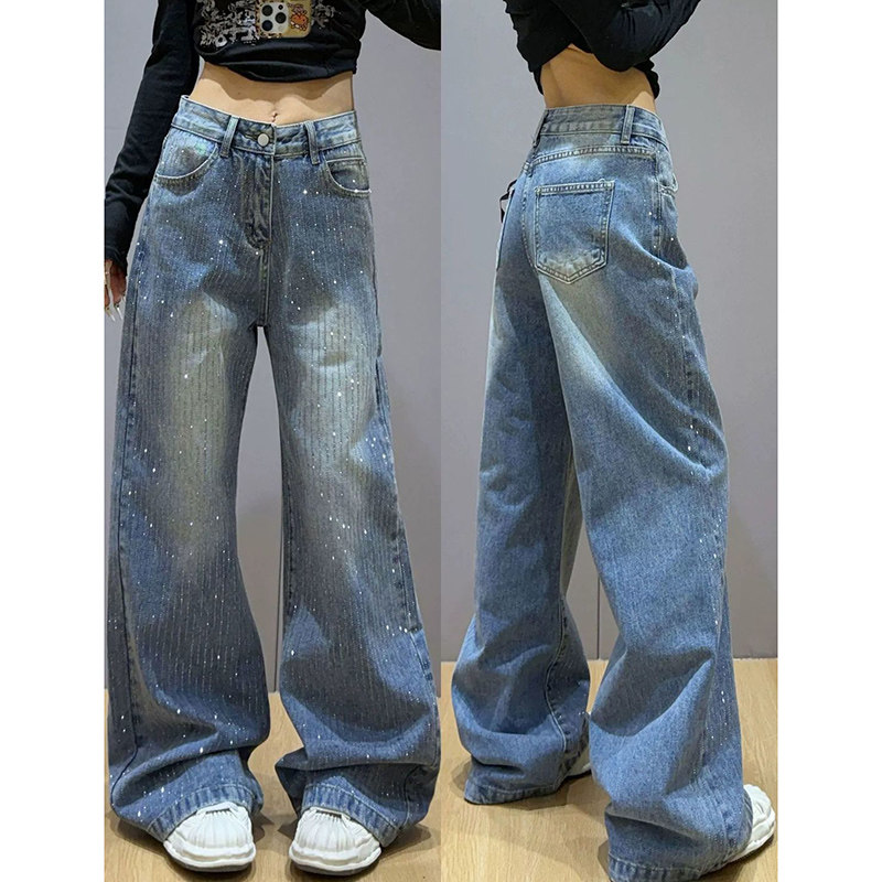 - 休闲宽松直筒牛仔裤女