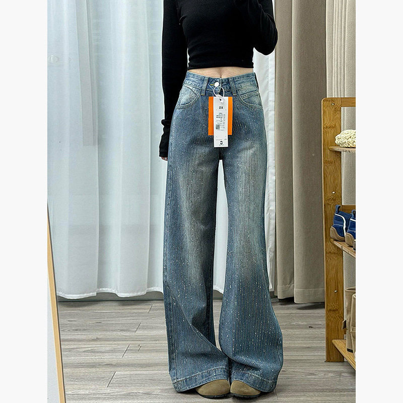 - 牛仔裤女微喇长裤高腰
