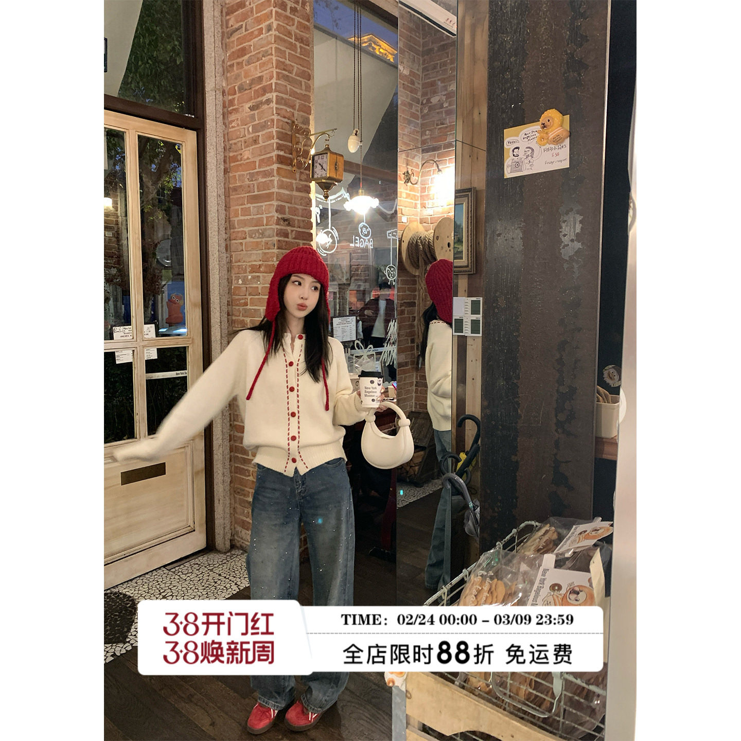 - 白色宽松牛仔裤
