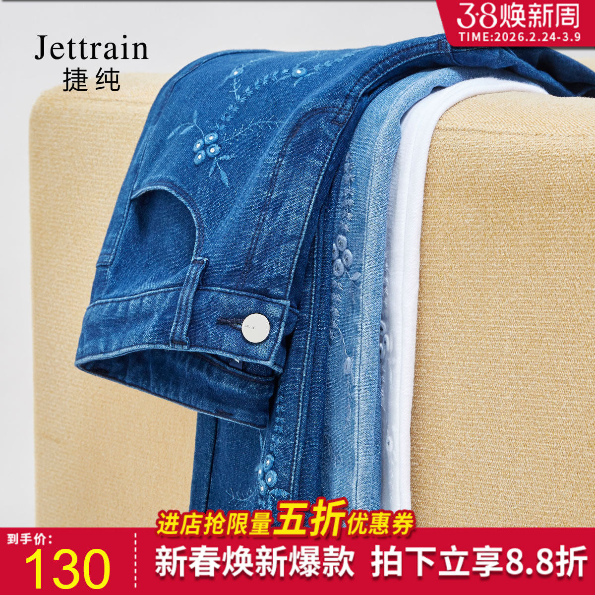 - 显瘦直筒牛仔裤