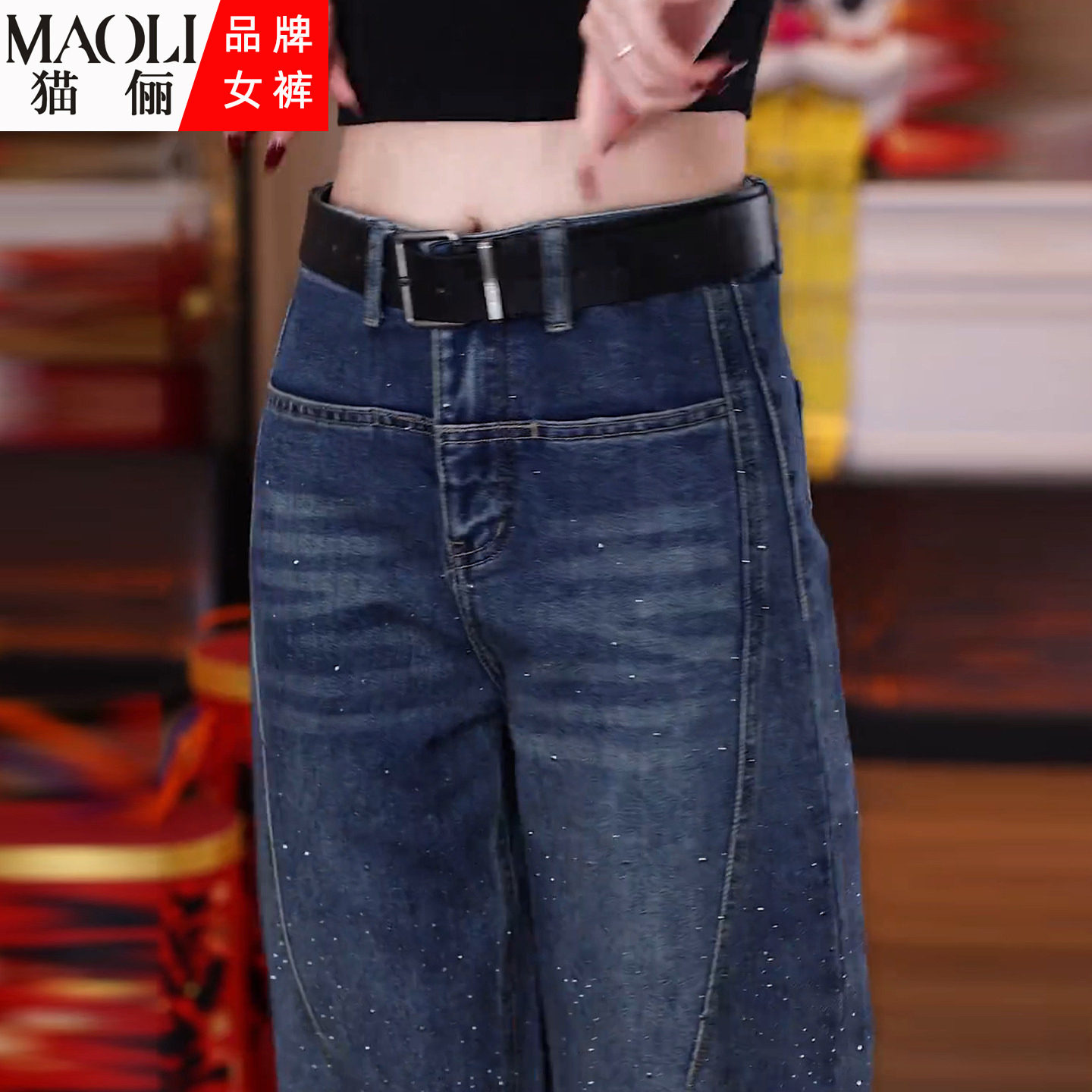 - 阔腿裤 长裤 牛仔