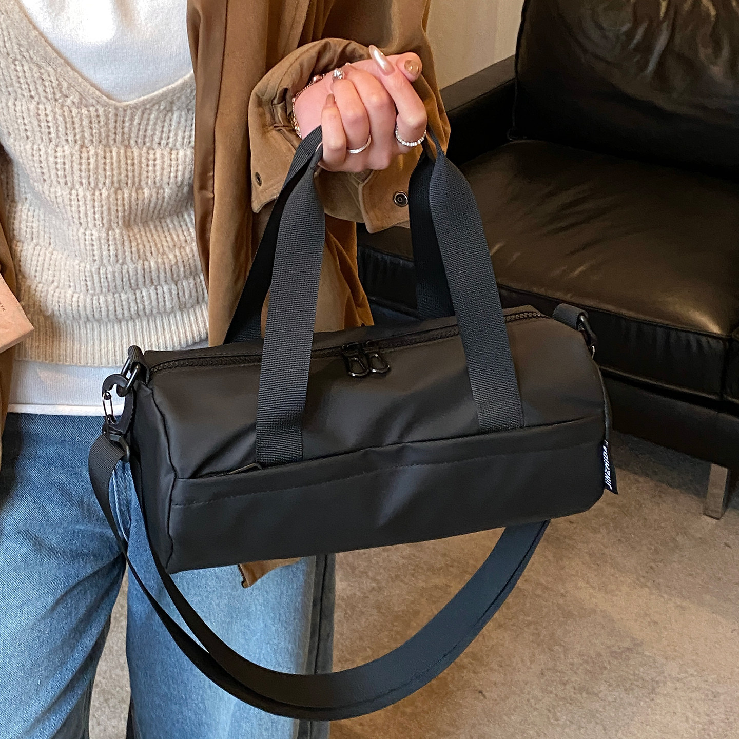 轻便休闲户外斜挎包女骑行运动便携单肩包健身圆筒旅行包桶包男潮