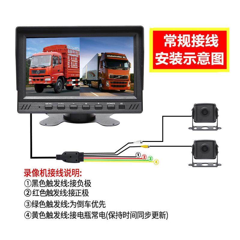 货车两路监控高清夜视行车记录仪双镜头倒车影像停车12V24V一体机