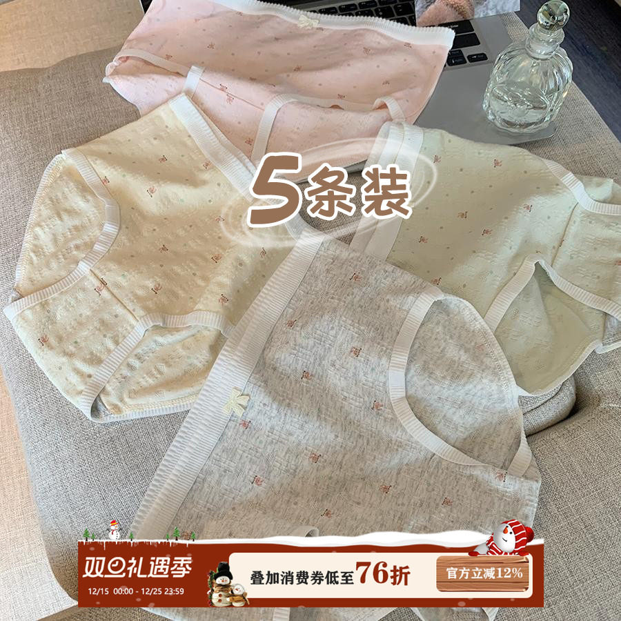 小美好~5条内裤秋冬粉色少女学生法式甜美中腰100%全棉内裤女纯棉