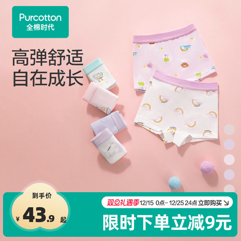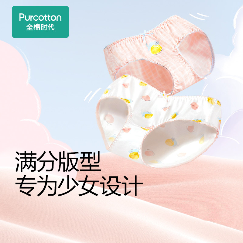 全棉时代女童内裤纯棉中腰透气学生可爱青少年高中生少女内裤 2条