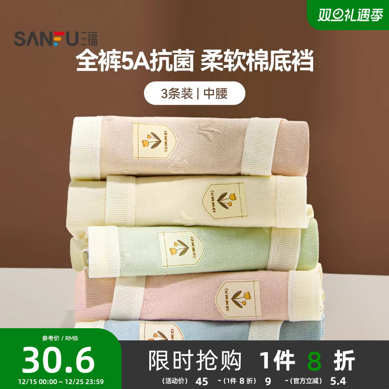 芬腾内裤女a类纯棉抗菌100%全棉中腰少女学生透气三角裤2025新款