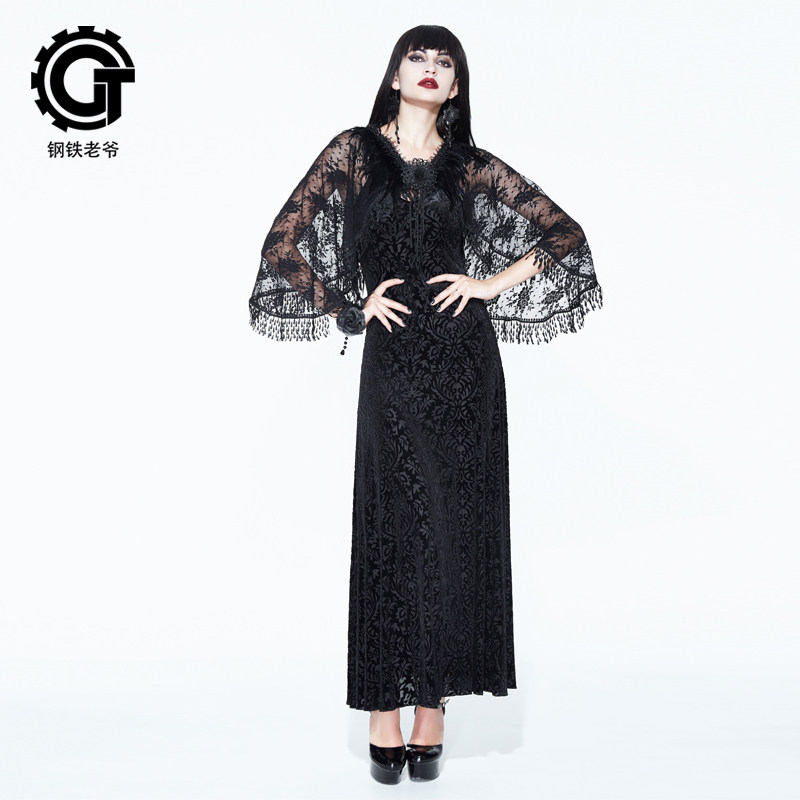 哥特风女装2件套吊带裙蕾丝披肩暗黑系性感修身连衣裙春秋款长裙
