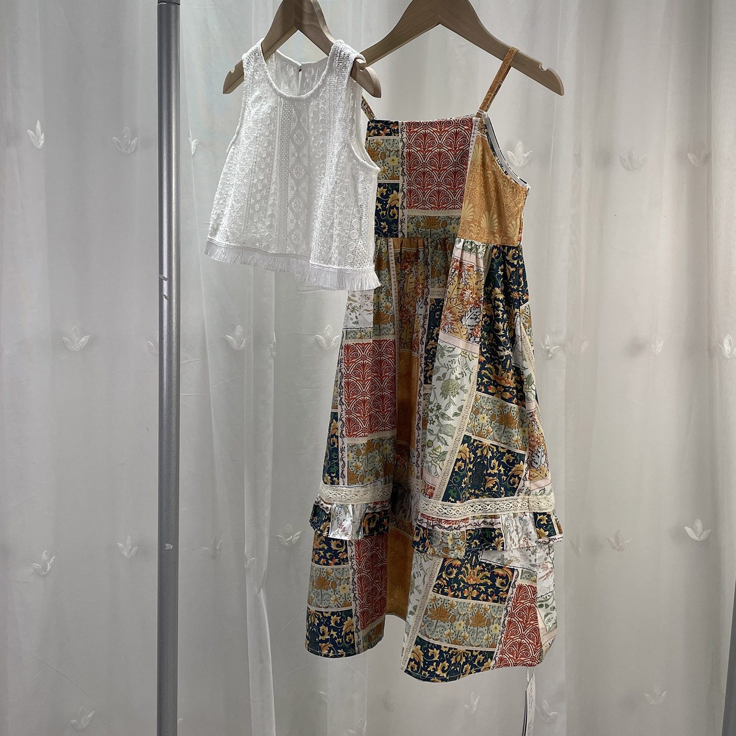 宝W品牌折扣童装中大童女童度假风连衣裙儿童夏季吊带裙背心2件套