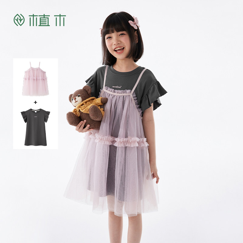 植木童装甜美网纱吊带女童连衣裙中大童2025夏装新款儿童2件套潮