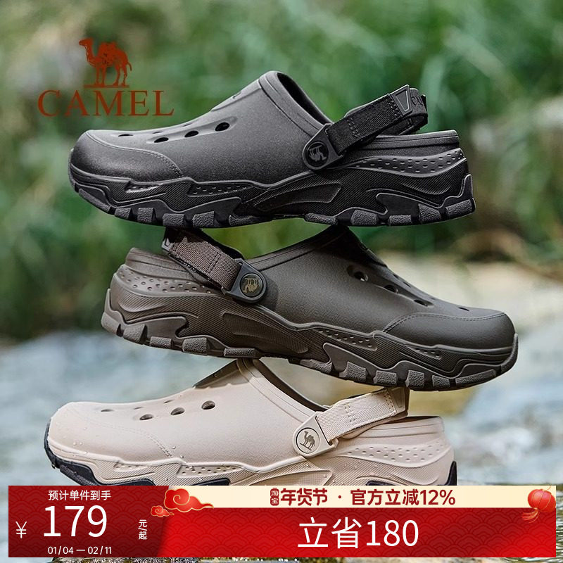 骆驼男鞋洞洞鞋夏季厚底防滑外穿女户外凉鞋包头沙滩鞋涉水拖鞋男