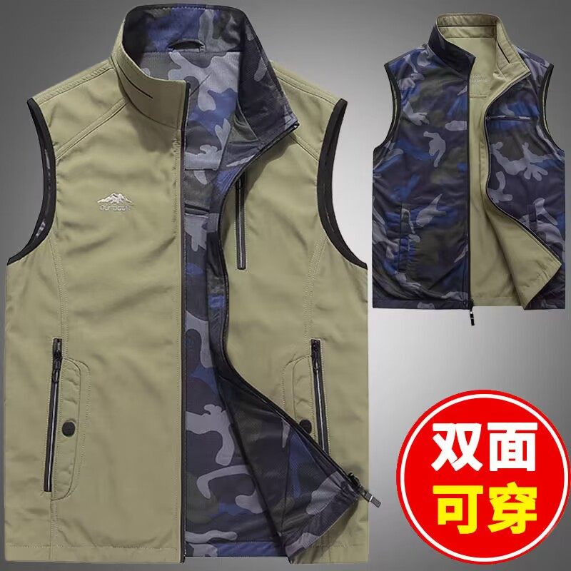 双面穿2025春秋户外马甲男多口袋工作宽松登山速干工装马夹冬上衣