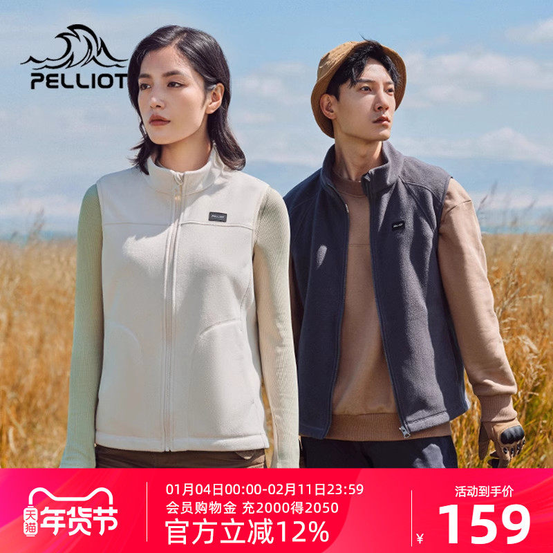 伯希和户外马甲男女秋冬抓绒衣保暖弹力坎肩透气开衫立领上衣背心