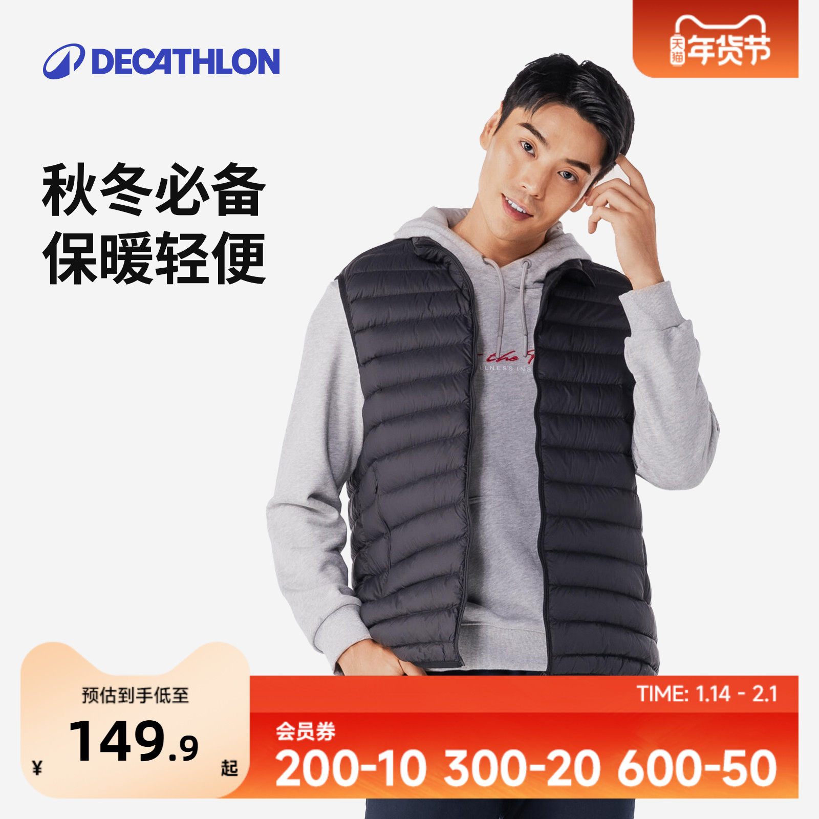 迪卡侬MW500户外马甲男士运动马甲聚酯内胆跑步背心男女马夹SAG1