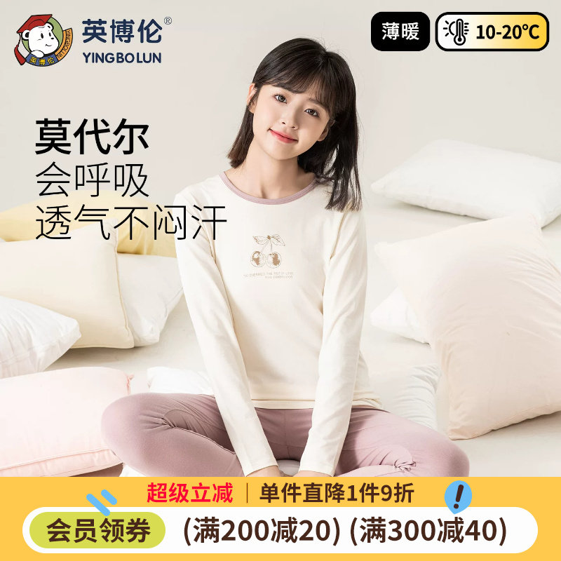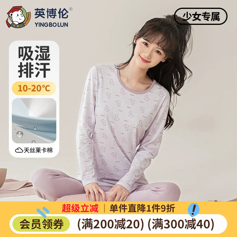 英博伦春秋少女内衣套装天丝莱卡女大童薄款秋衣秋裤学生打底睡衣