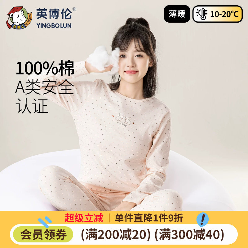 英博伦秋冬全棉少女内衣家居服套装秋衣裤保暖纯棉薄款睡衣大女童