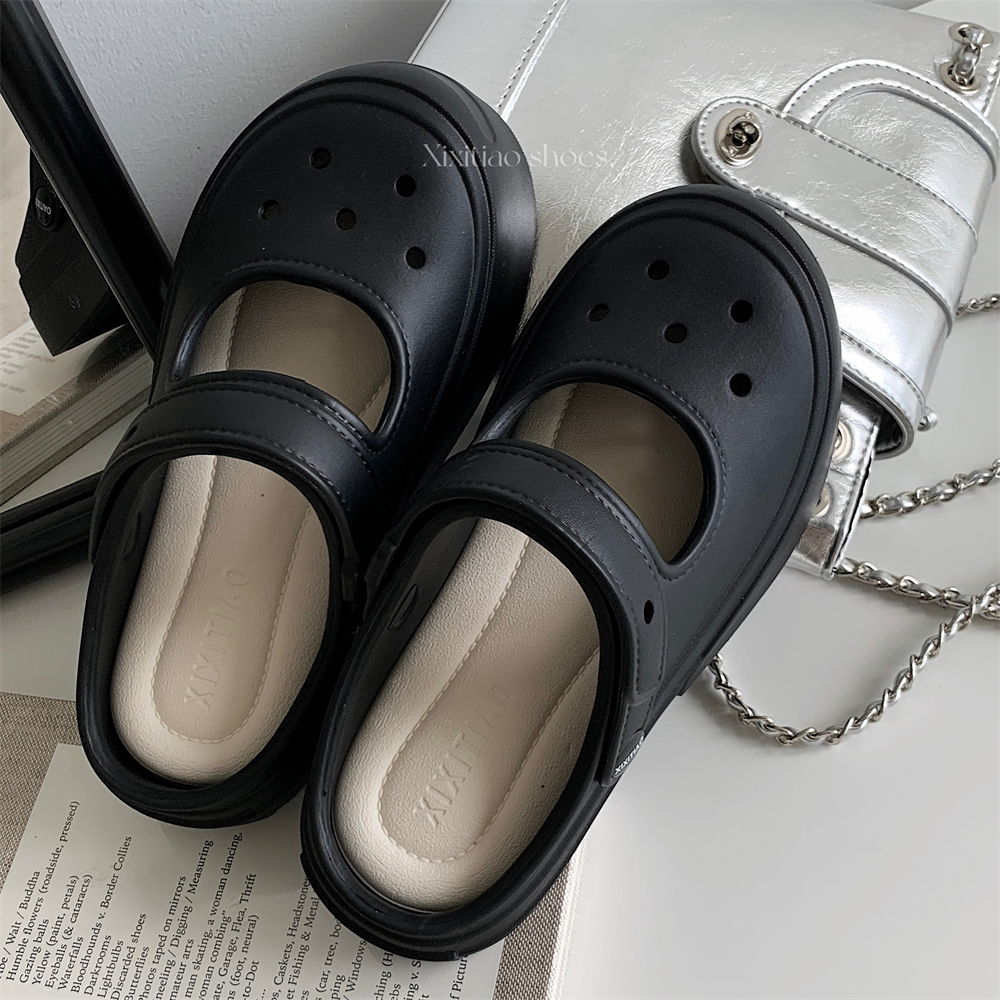 三利玛丽珍洞洞鞋女2023新款踩屎感拖鞋夏季外穿防滑包头厚底凉鞋