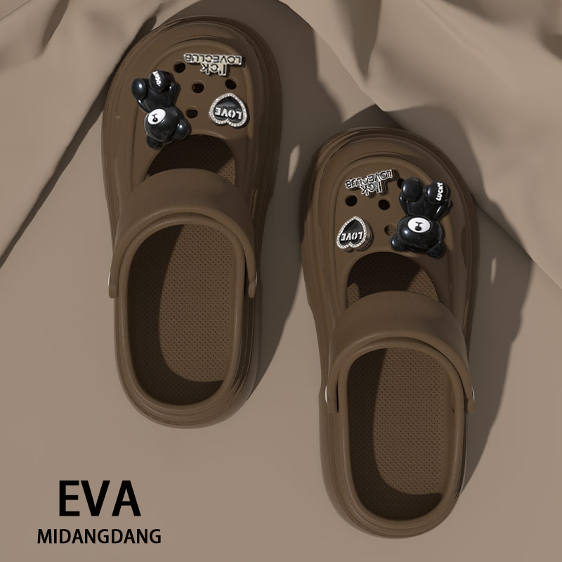 玛丽珍洞洞鞋女款夏季外穿可爱水晶熊增高厚底沙滩防滑包头凉拖鞋