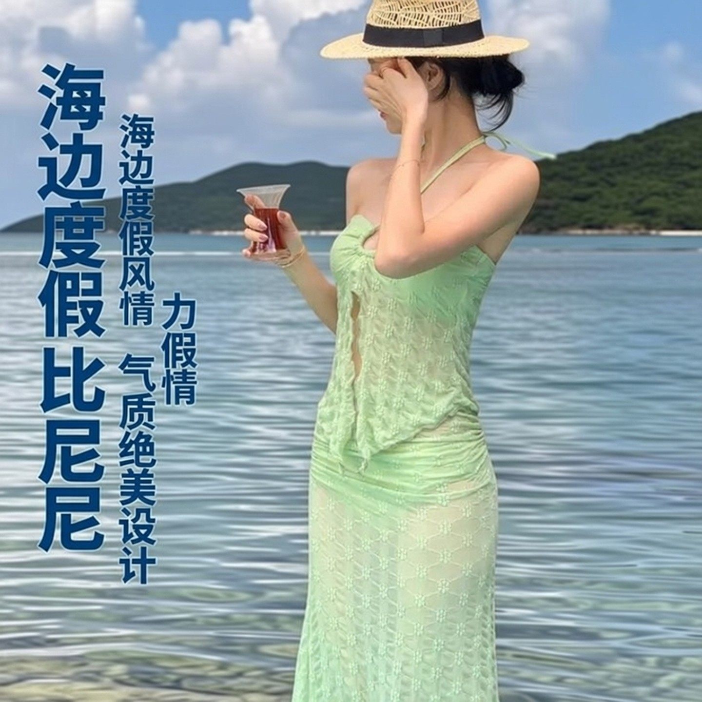 2025新款气质绝美海边度假风分体长裙纯欲小胸比基尼三件套泳衣女