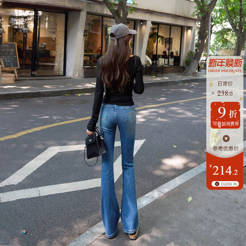 超模裤太平鸟高腰微喇牛仔长裤2025秋冬新款修身喇叭牛仔马蹄裤女