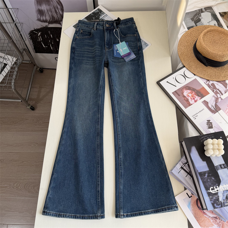 时髦感!法式微喇叭牛仔裤女加绒2025秋冬高腰弹力微喇叭裤长裤女