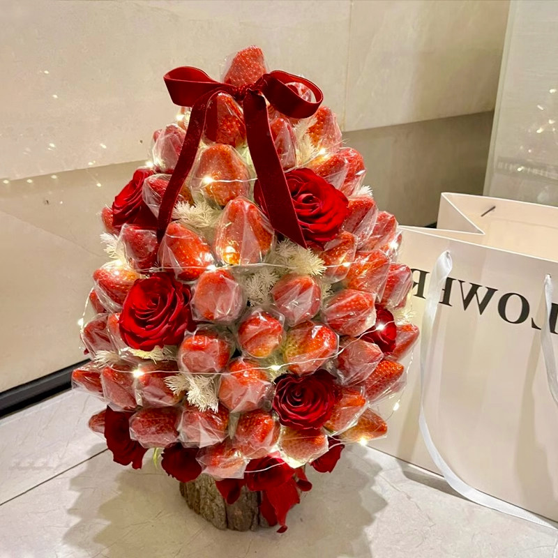跨新年草莓塔抱抱桶花束鲜花速递同城北京上海全国店成品配送生日