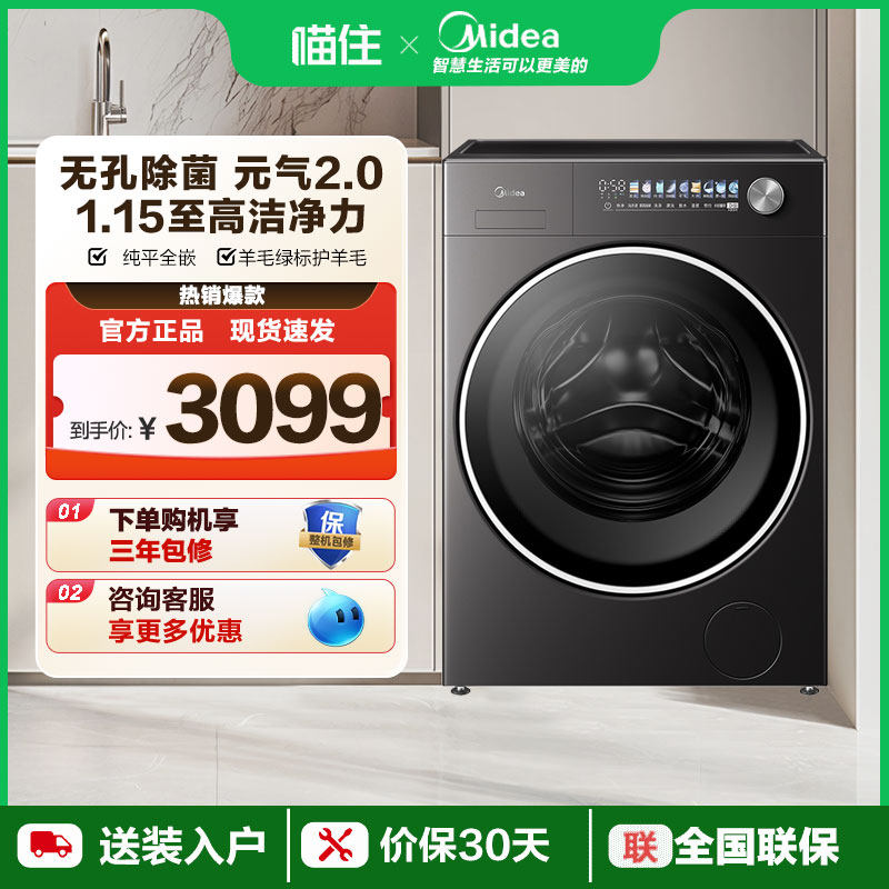 美的滚筒洗衣机家用10公斤大容量变频除菌除螨12KG洗烘一体官方店