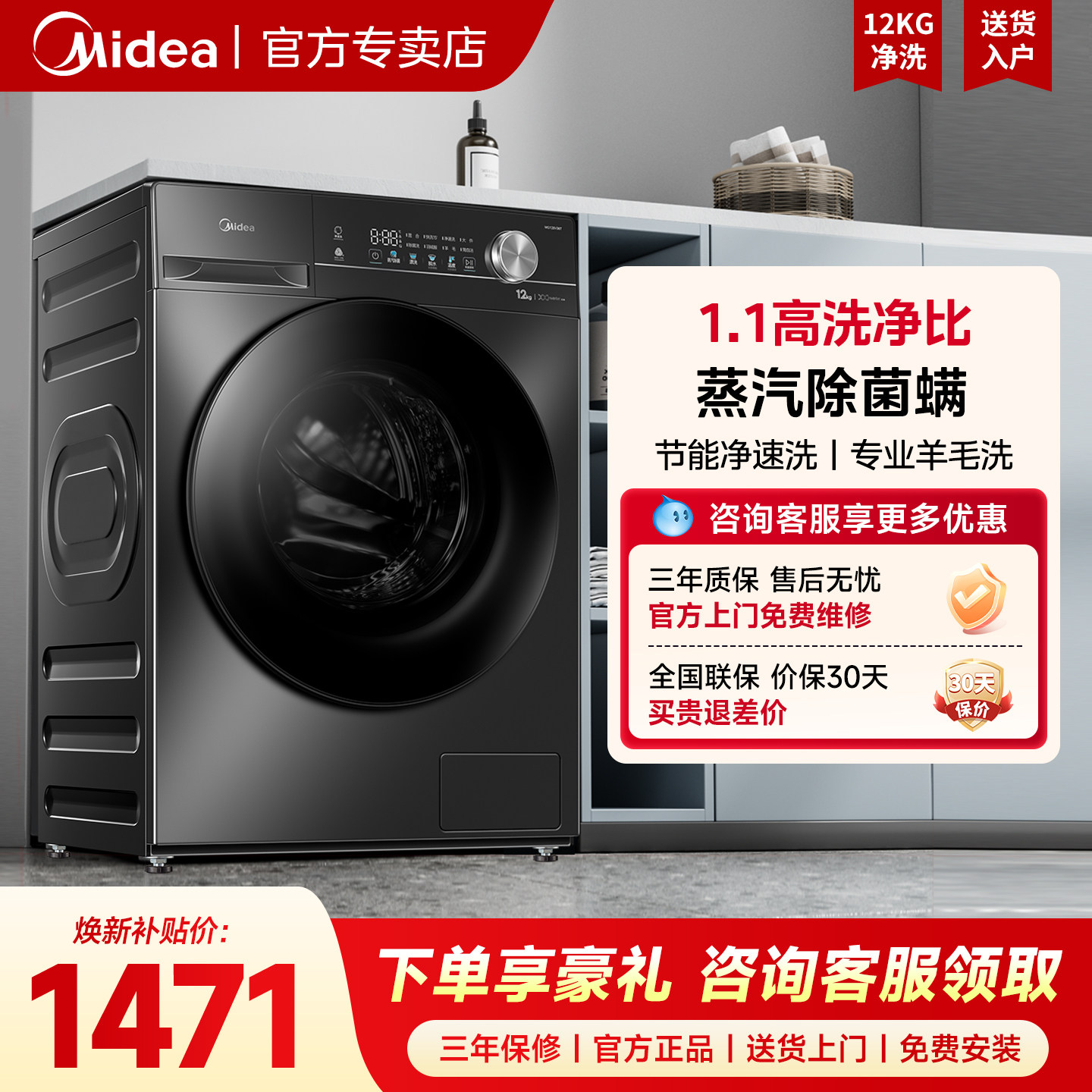 美的滚筒洗衣机全自动超薄家用12公斤大容量除螨洗脱一体官方店