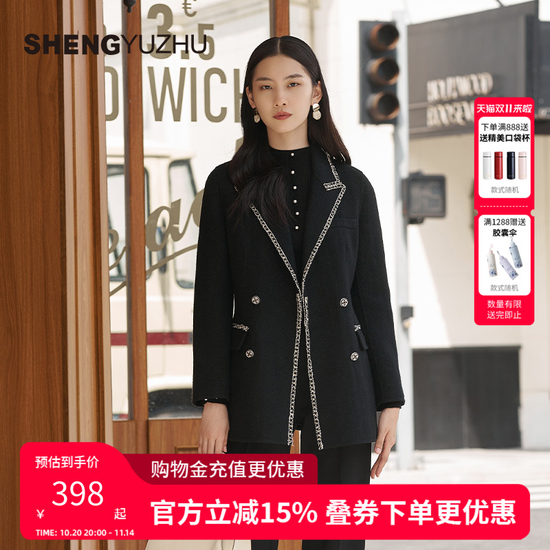 声雨竹官方旗舰店冬季新款毛呢外套女小香风商场同款上衣气质休闲