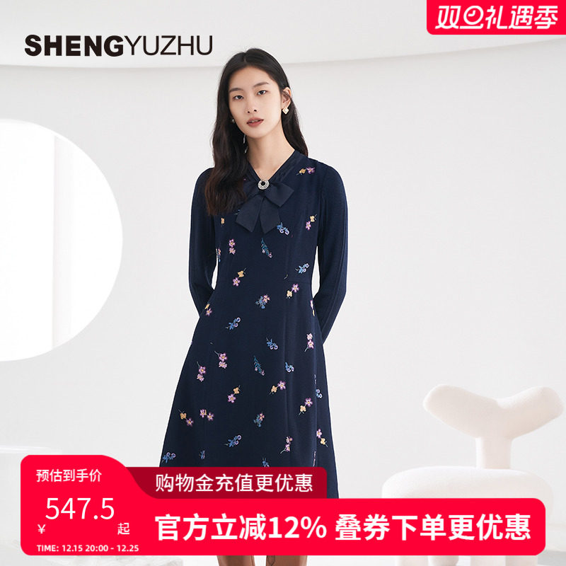 - 长袖雪纺连衣裙长款碎花裙长裙