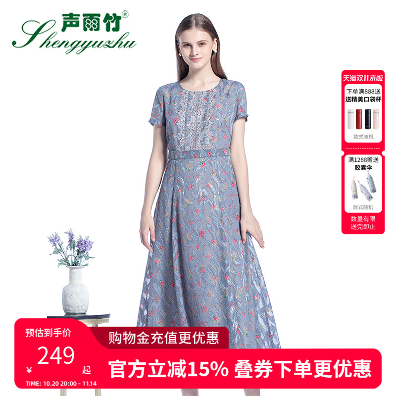 声雨竹专柜同款夏秋季新款连衣裙 甜美修身薄款短袖中长裙A字裙女