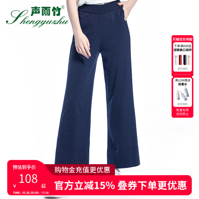 声雨竹专柜秋冬款休闲裤女中腰直筒阔脚舒适潮流宽松百搭成熟垂坠
