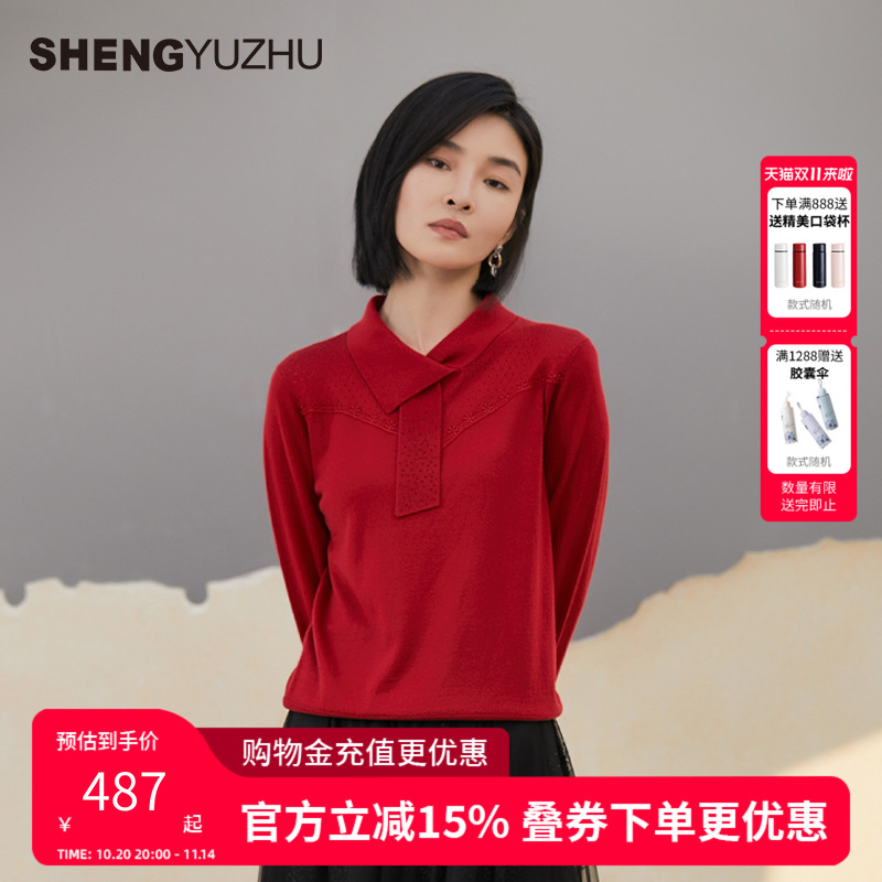 声雨竹女装折扣针织衫2025秋冬新款上衣品牌中年羊毛娃娃领打底衫