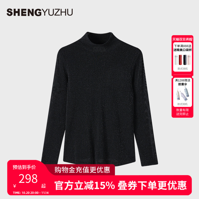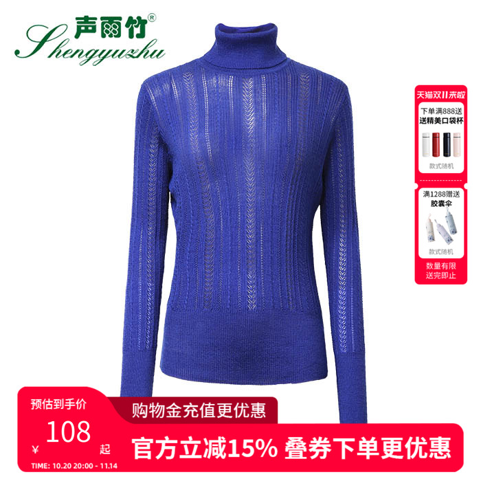 正品声雨竹针织衫女2025秋冬装新款品牌上衣时尚羊毛半高领打底衫