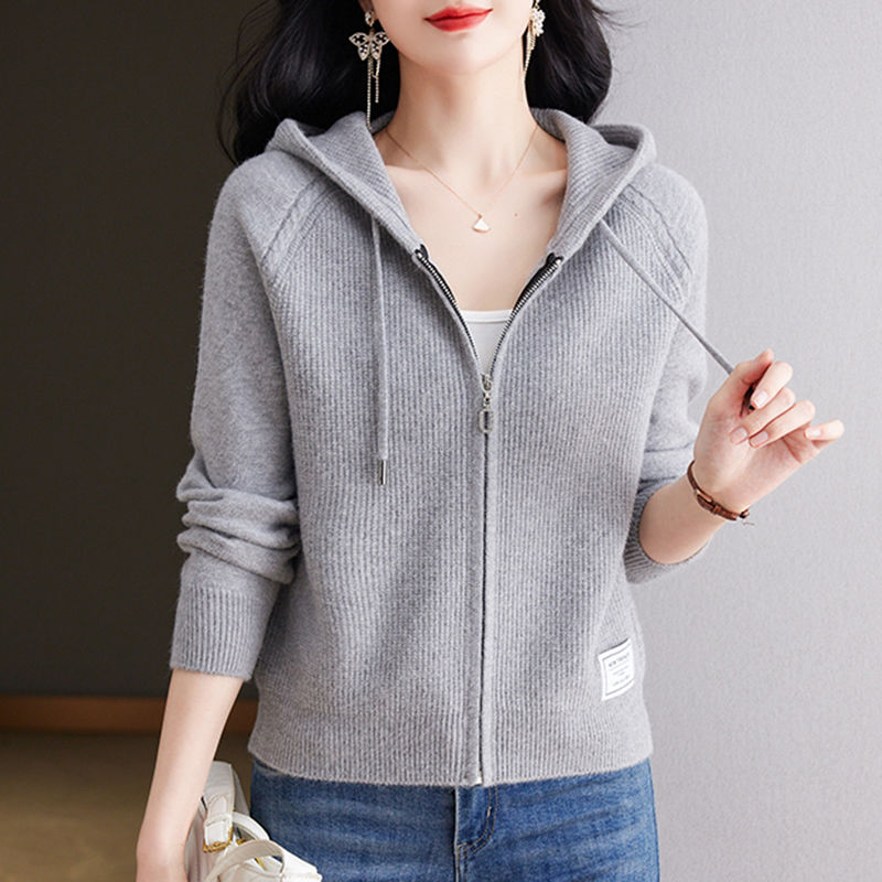 声雨竹2025秋冬季新款针织衫女品牌折扣羊毛上衣时尚连帽开衫外套