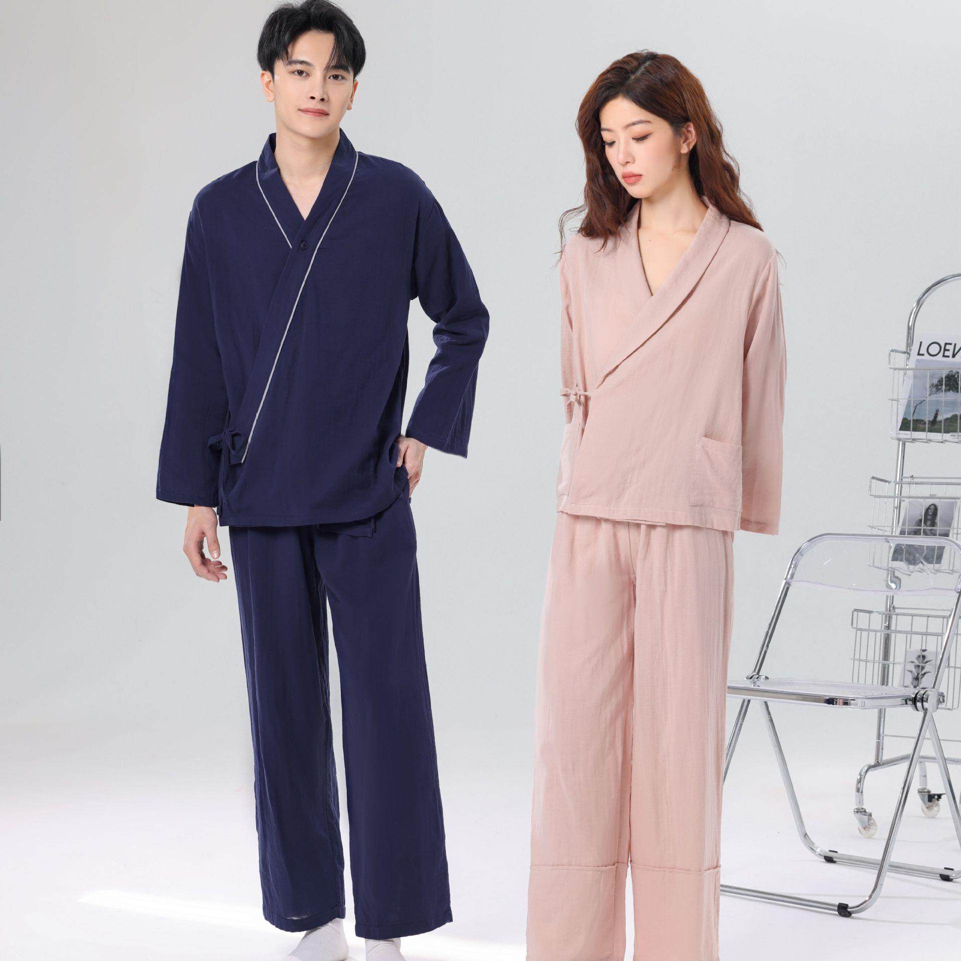 秋冬情侣睡衣套装轻薄透气棉系带和服两件套男汗蒸服女浴袍家居服