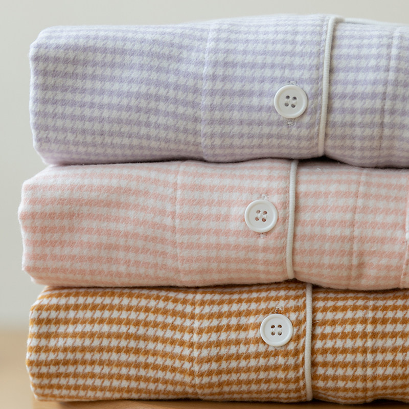 日式无印风格子睡衣男女春秋冬季纯棉磨毛绒布长袖情侣家居服套装