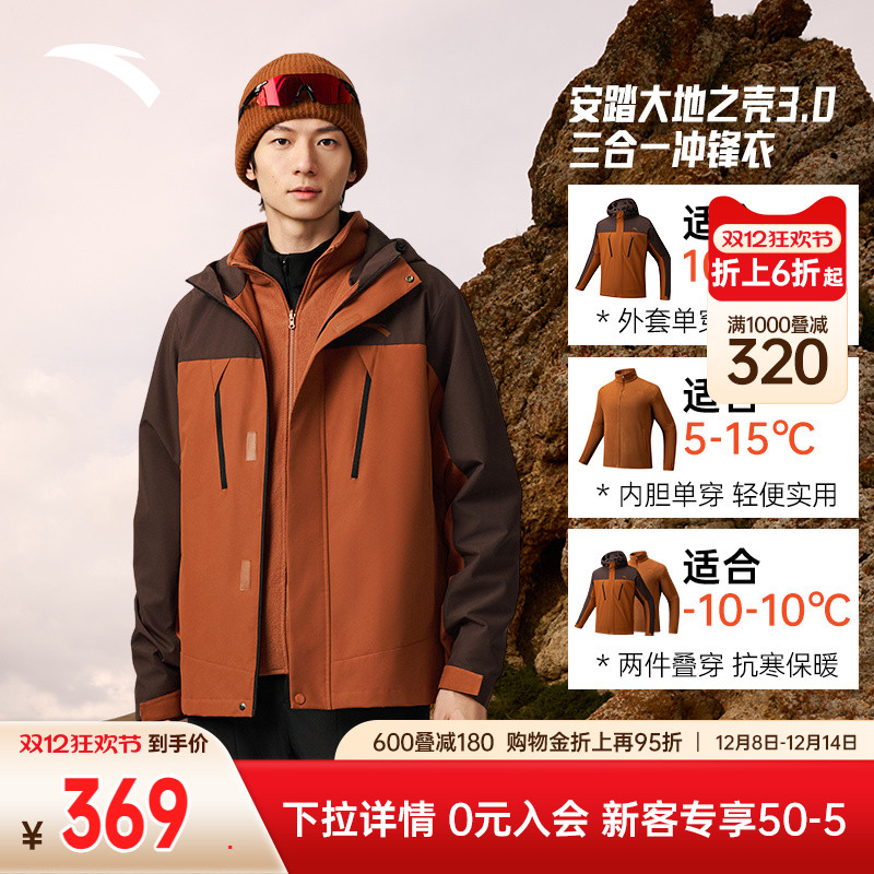安踏摇粒三合一冲锋衣男秋冬季新款摇粒绒内胆防泼水加绒夹克上衣
