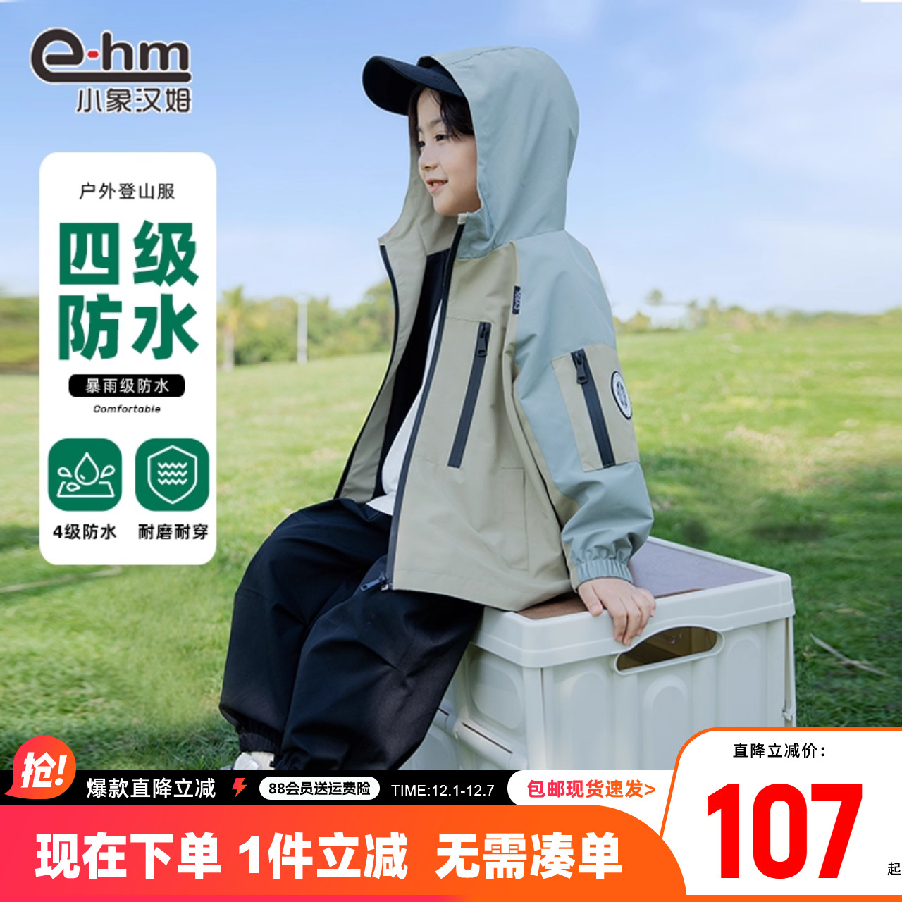 小象汉姆童装男童冲锋衣儿童户外三防外套2025秋装新款男孩上衣潮