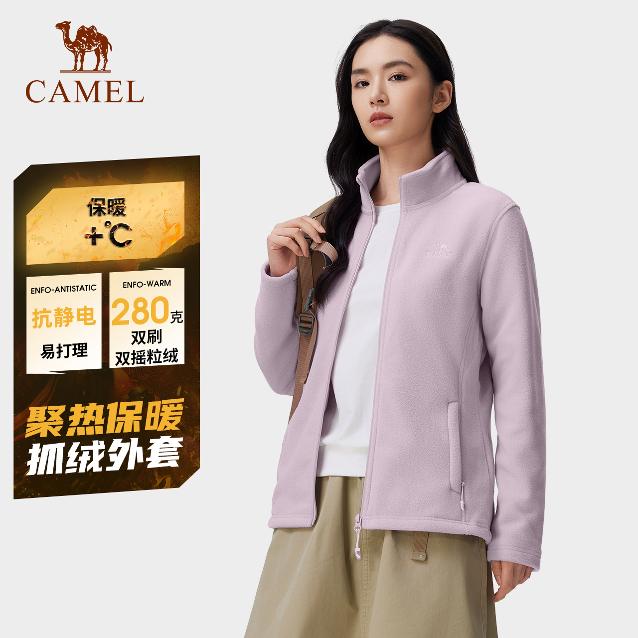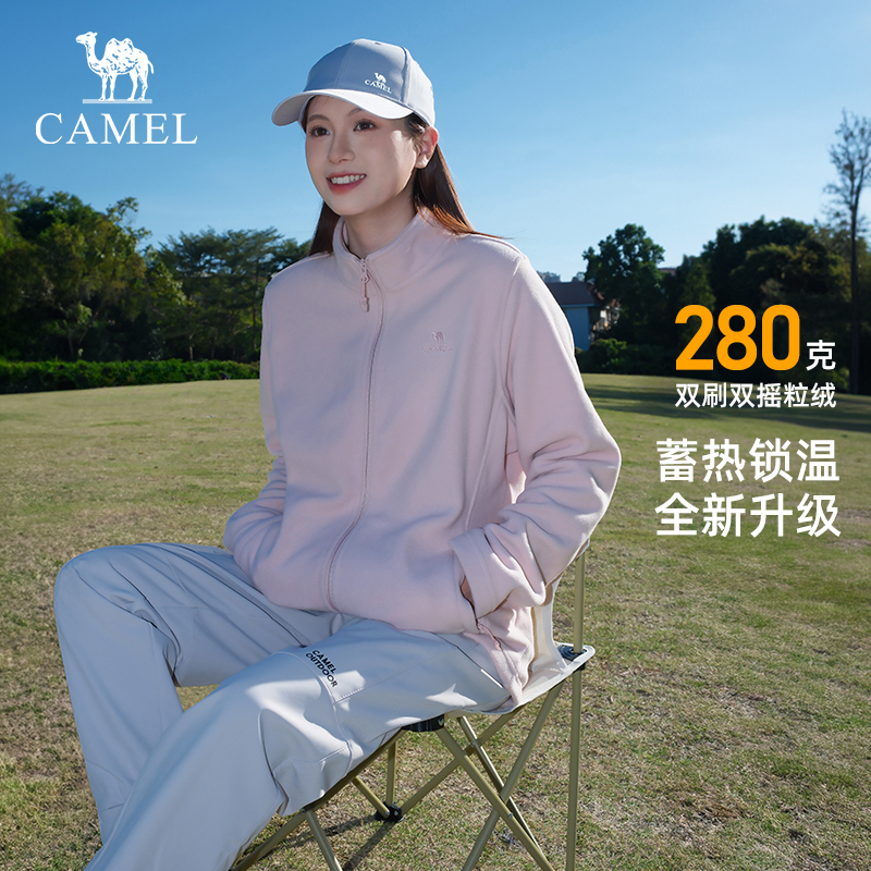 骆驼户外抓绒衣女春秋摇粒绒外套加绒保暖冲锋衣内胆徒步登山服男