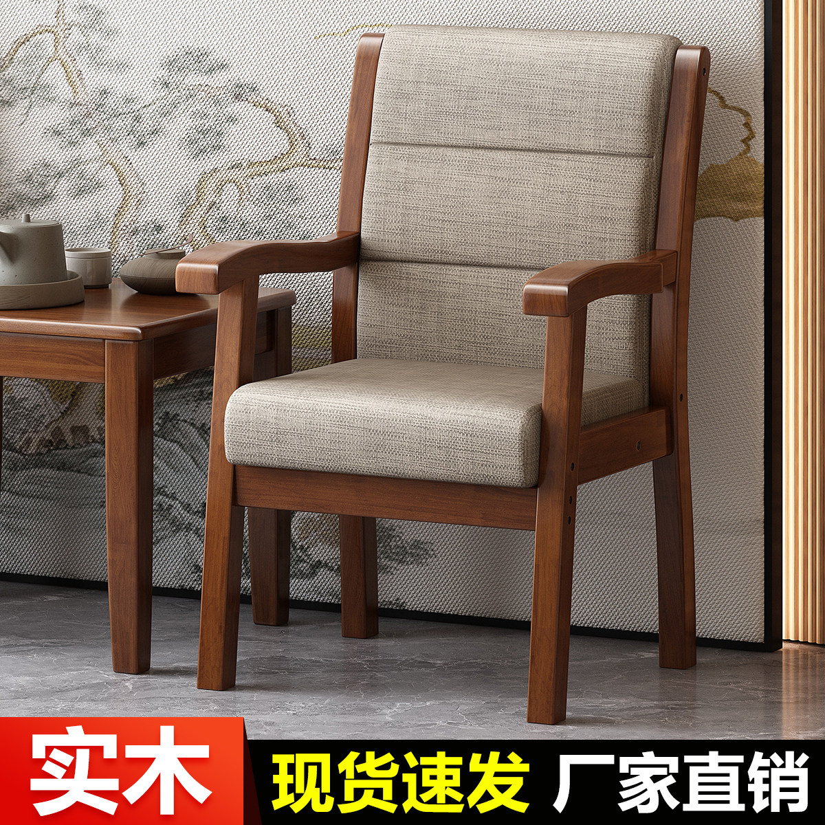 实木现代简约家用餐椅扶手椅靠背椅子麻将椅老人椅软包沙发椅餐厅
