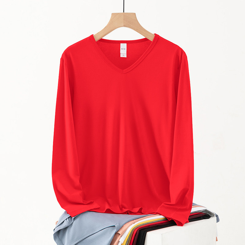 莫代尔长袖t恤男V领秋冬季本命年红色体恤内搭打底衫纯色秋衣小衫