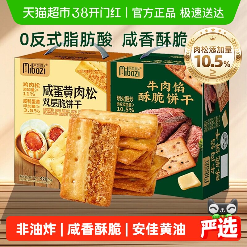 米芭滋牛肉馅酥脆饼干咸蛋黄肉松夹心咸味薄脆儿童年货礼盒零食品