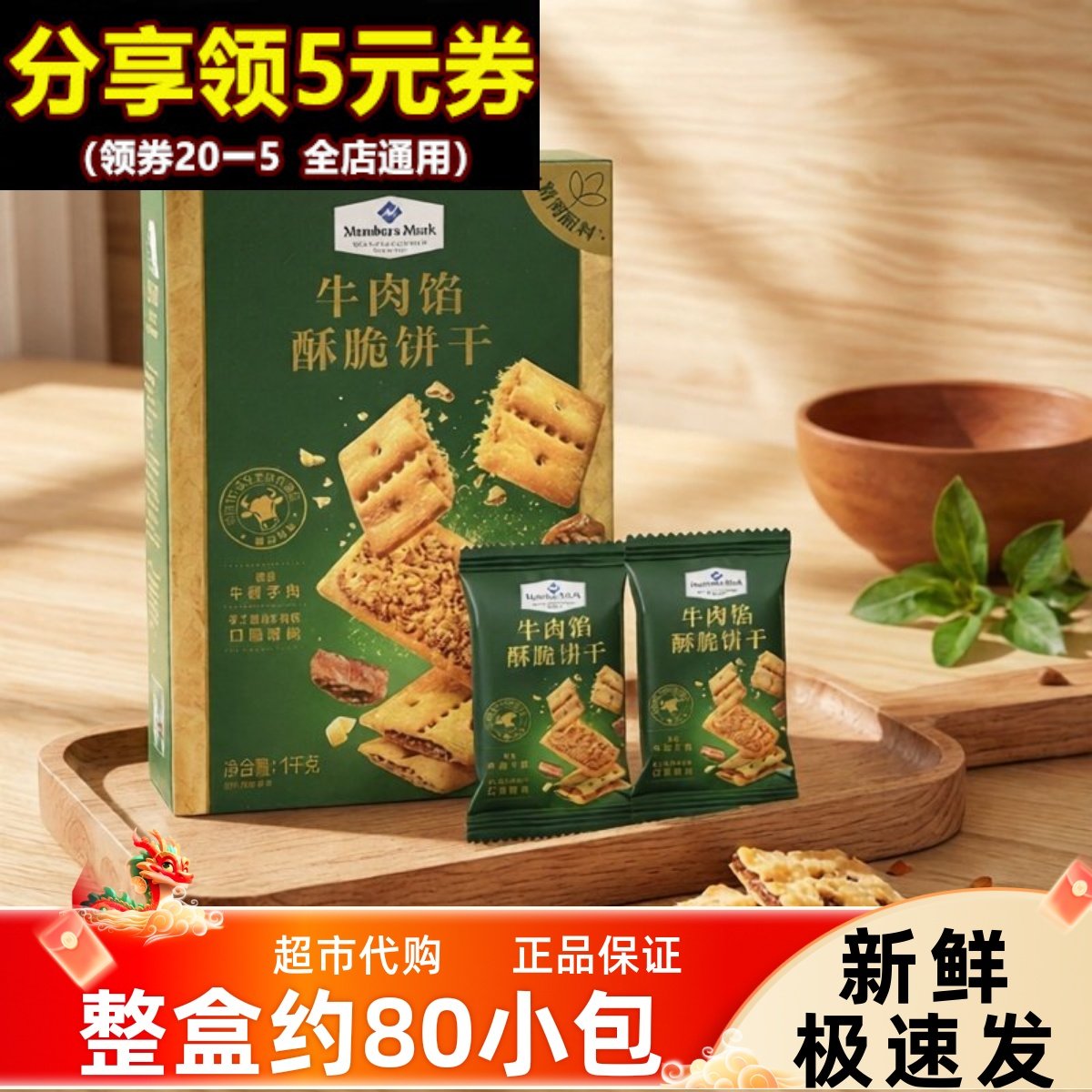 会员超市牛肉馅酥脆饼干1kg年货礼盒肉松夹心独立小包零食代早餐